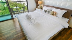 Peak Towers apartments are fully furnished. The living room is combined with a dining kitchen. Features include full air conditioning, flat-screen cable TV and sofa-bed for extra guests. The kitchen comes equipped with a refrigerator, stove, microwave and all the basic equipment required for cooking and dining. The king-size bedroom features amazing Sea views all the way to Kho Larn island. The modern en-suite bathroom has a hot water 'rain' shower. The Balcony has table and chairs, with amazing uninterrupted sea views over Cozy Beach and the Islands.